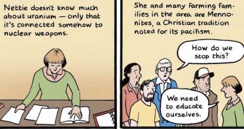 I learned about a community-minded, influential Canadian academic and passionate activist named Nettie Wiebe from an inspiring story about her told in graphic novel style by Jonathan Dyck and Josiah Neufeld in the most recent issue of Broadview Magazine.