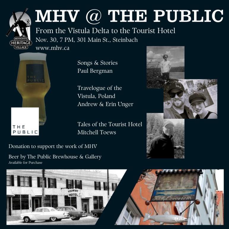 Mennonites were on tap because it was a FUNDRAISER for the Mennonite Heritage Village Museum, arranged by departing executive Nathan Dyck. A fine vocalist, as it turns out—no great surprise as so many Mennonites are good singers. It’s true, scientific, even. Ask any CSNY (Cornie Stoesz or Neufeld, Yasch). https://mennoniteheritagevillage.com/